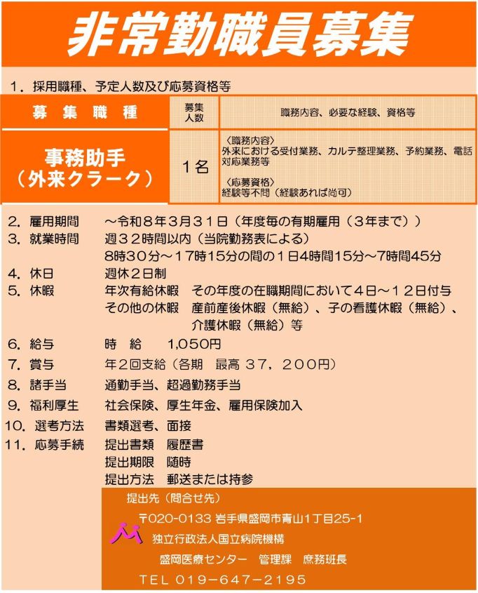事務助手(外来クラーク) (非常勤職員)