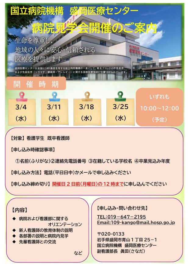 病院見学会開催のご案内